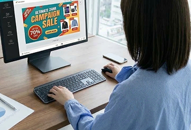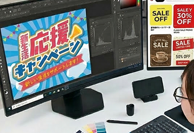 1年目、自社製品の理解を深め、先輩に教わりながら既存デザインの修正などを担当し、基礎力をつけます。その後、半年程度で徐々に簡単なバナー制作などを行っていきます。