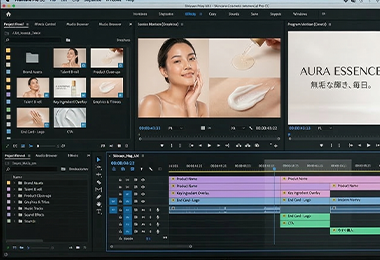 社内のデザイン全般を担当します。バナーをはじめ、ブランドのオフィシャルサイトや商品LP、お客様に送付するチラシ、新商品のパッケージデザインや駅看板、動画編集など幅広く制作します。EC事業部や商品企画・開発部と連携しながら制作しています。